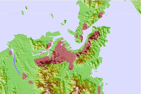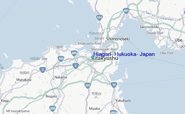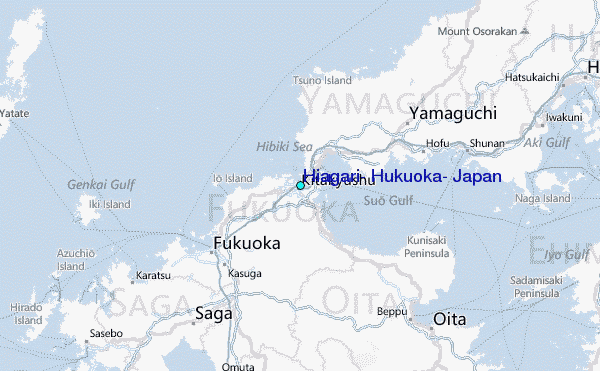 Use this relief map to navigate to tide stations, surf breaks and cities that are in the area of Hiagari, Hukuoka, Japan.