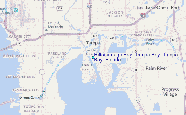 Use this relief map to navigate to tide stations, surf breaks and cities that are in the area of Hillsborough Bay, Tampa Bay, Tampa Bay, Florida.