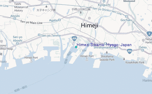 Use this relief map to navigate to tide stations, surf breaks and cities that are in the area of Himezi Sikama, Hyogo, Japan.