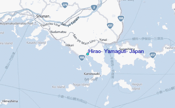 Use this relief map to navigate to tide stations, surf breaks and cities that are in the area of Hirao, Yamaguti, Japan.