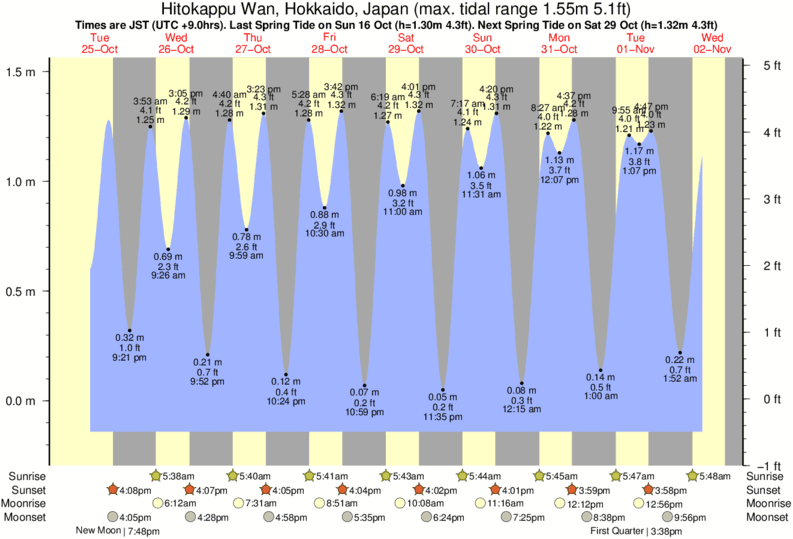 Tide chart for Hitokappu WanShowing low and high tide times for the next 30 days at Hitokappu Wan. Tide Times are JST (UTC +9.0hrs).