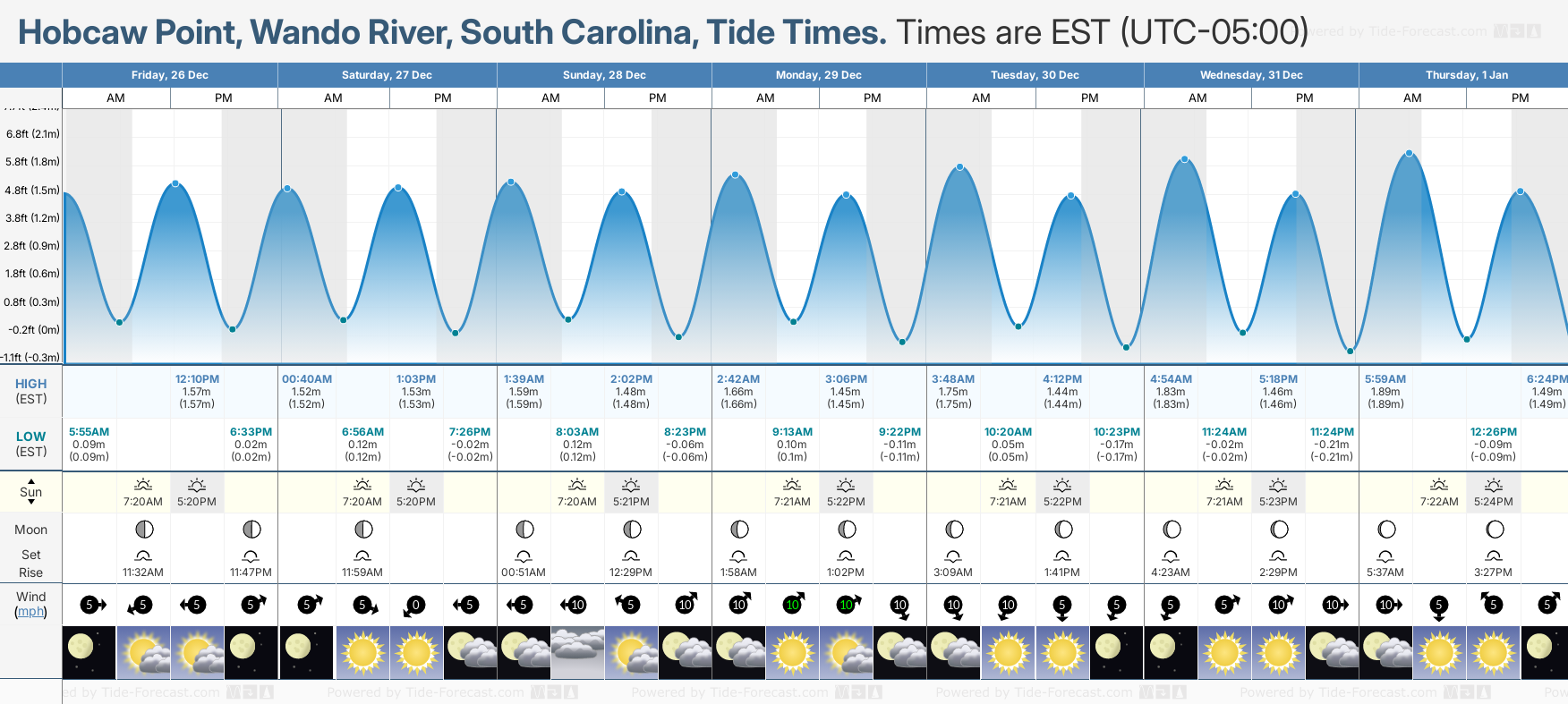NOTE: Use of this site for Hobcaw Point, Wando River, South Carolina tide times is subject to our terms.
