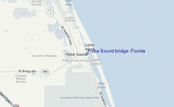 Use this relief map to navigate to tide stations, surf breaks and cities that are in the area of Hobe Sound bridge, Florida.