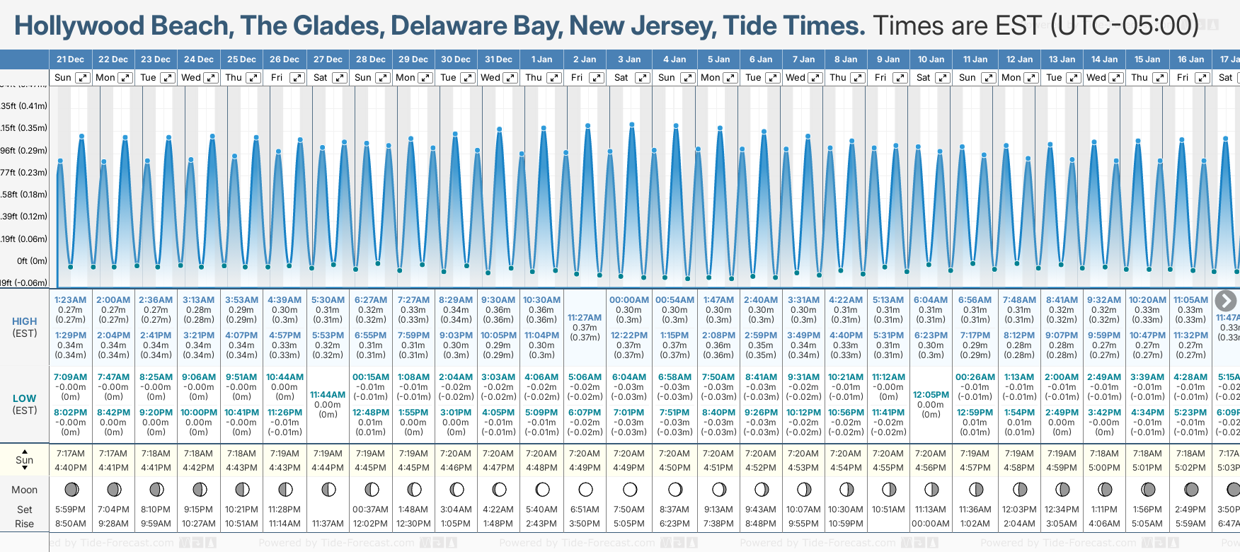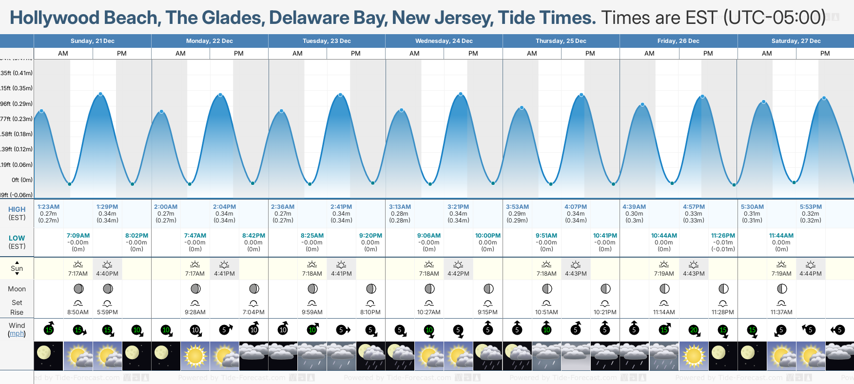 NOTE: Use of this site for Hollywood Beach, The Glades, Delaware Bay, New Jersey tide times is subject to our terms.