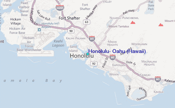 Use this relief map to navigate to tide stations, surf breaks and cities that are in the area of Honolulu, Oahu (Hawaii).