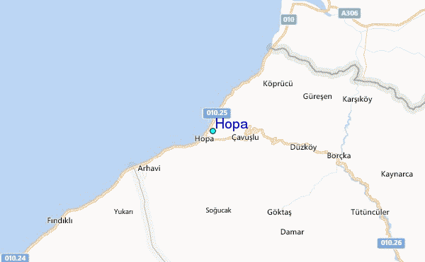 Use this relief map to navigate to tide stations, surf breaks and cities that are in the area of Hopa.