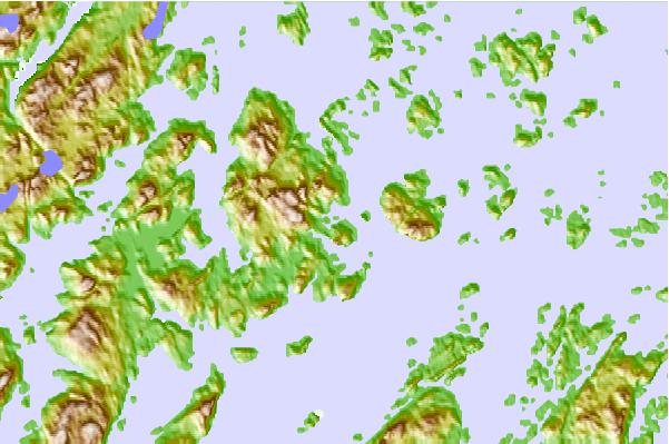 Use this relief map to navigate to tide stations, surf breaks and cities that are in the area of Hopedale, Newfoundland.