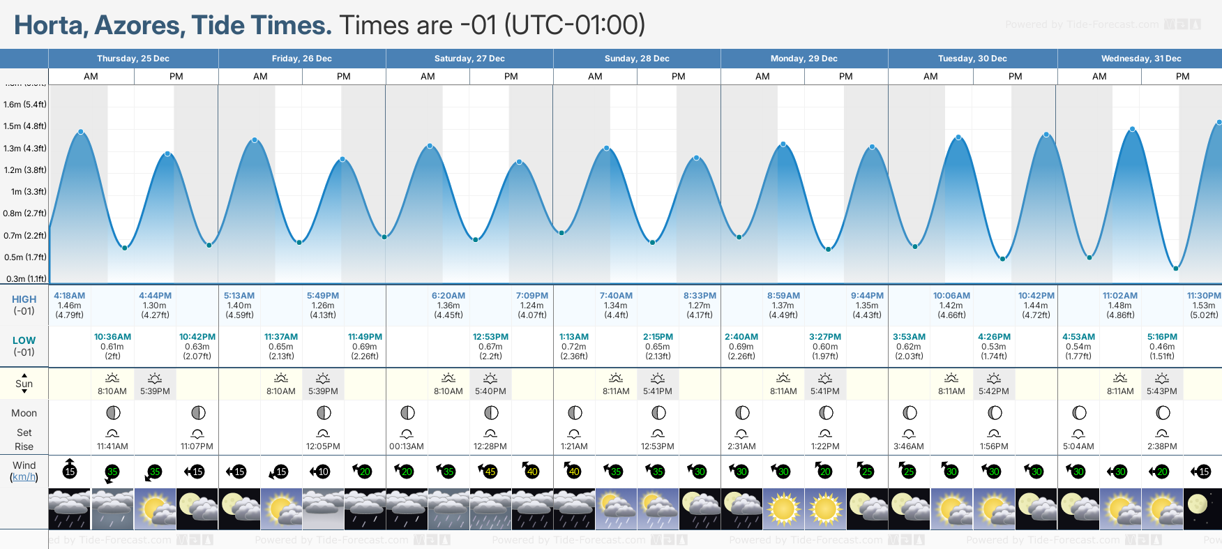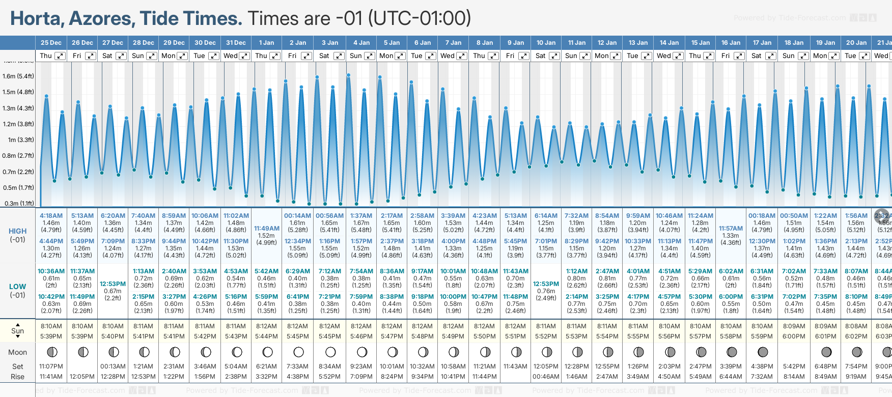 Tide Times for Horta (tomorrow): Thursday 25 December 2025