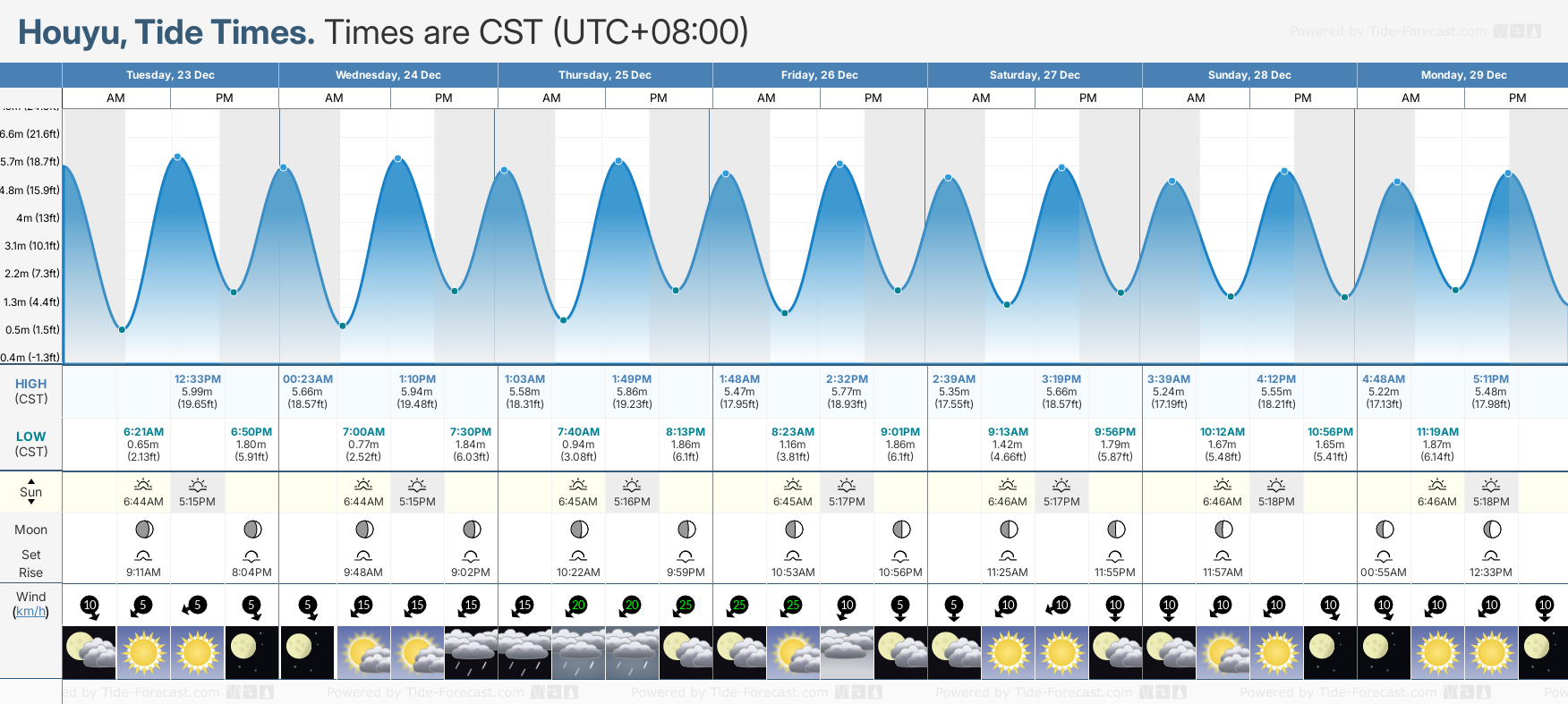 Tide Times for Houyu (tomorrow): Wednesday 24 December 2025