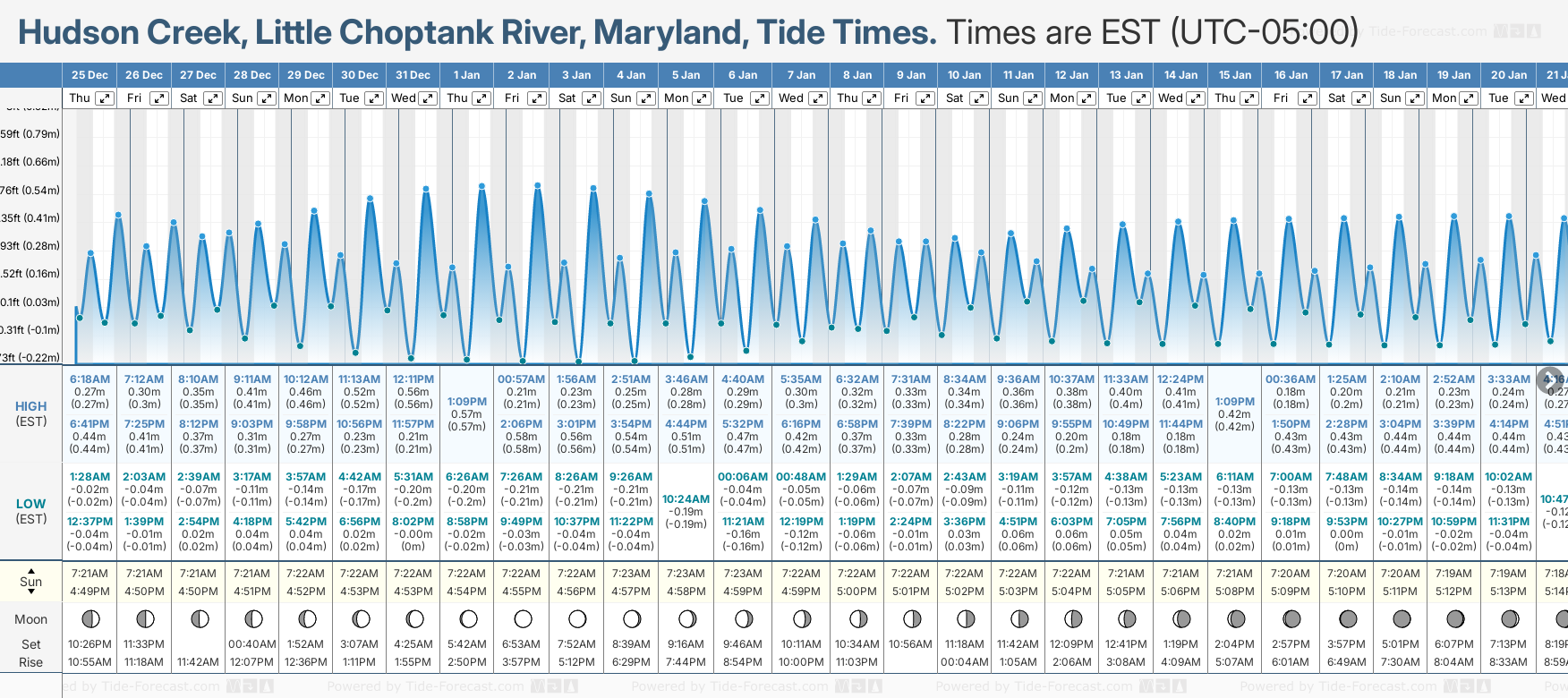 Today's tide times for Hudson Creek, Little Choptank River: Thursday 25 December 2025