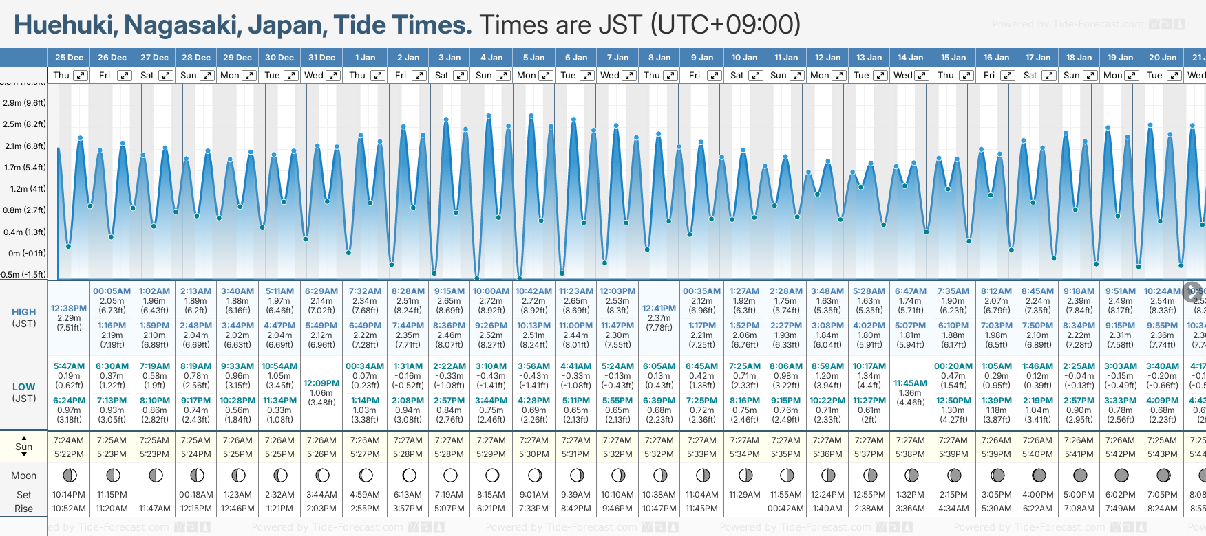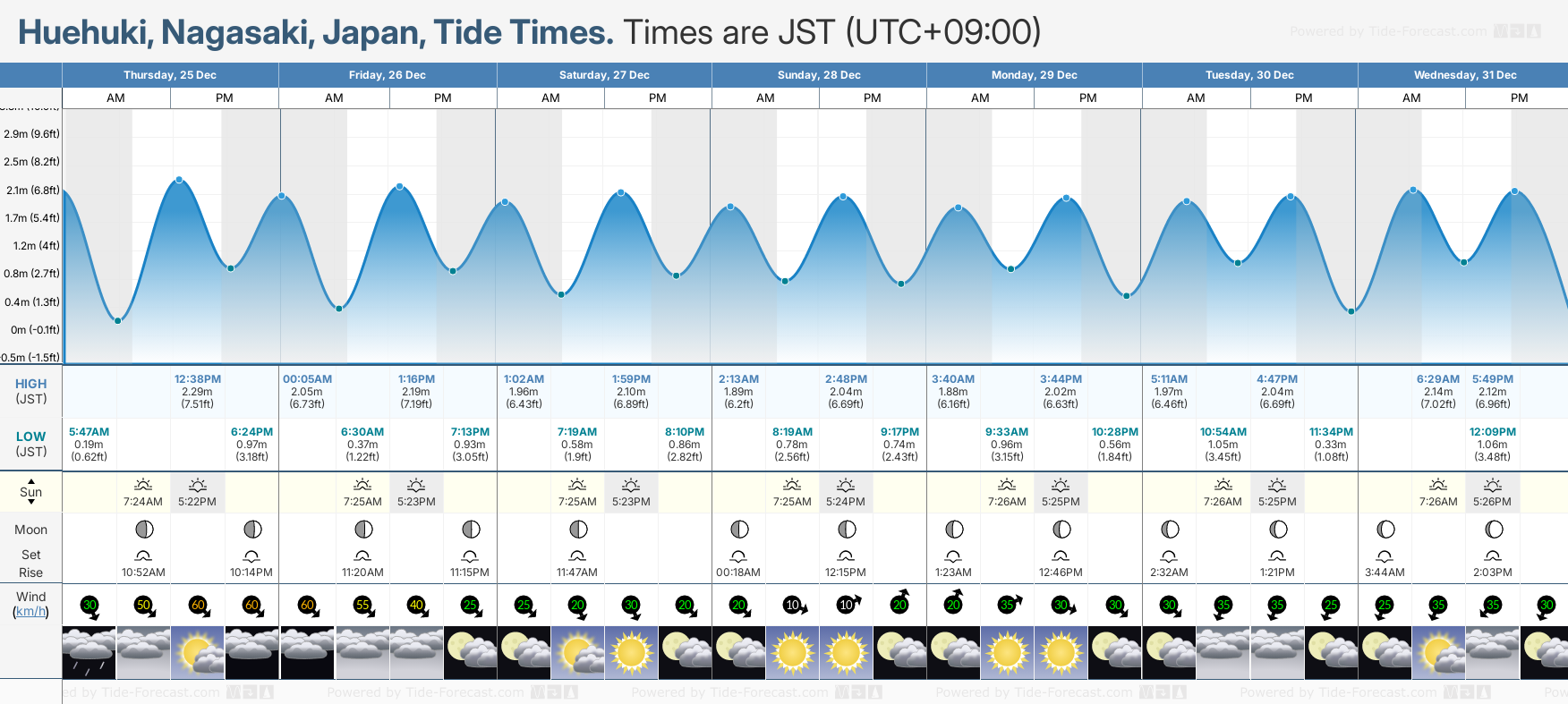 NOTE: Use of this site for Huehuki, Nagasaki, Japan tide times is subject to our terms.