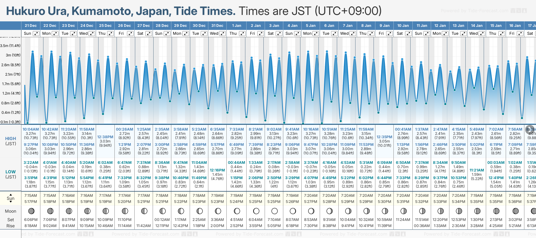 Today's tide times for Hukuro Ura: Sunday 21 December 2025