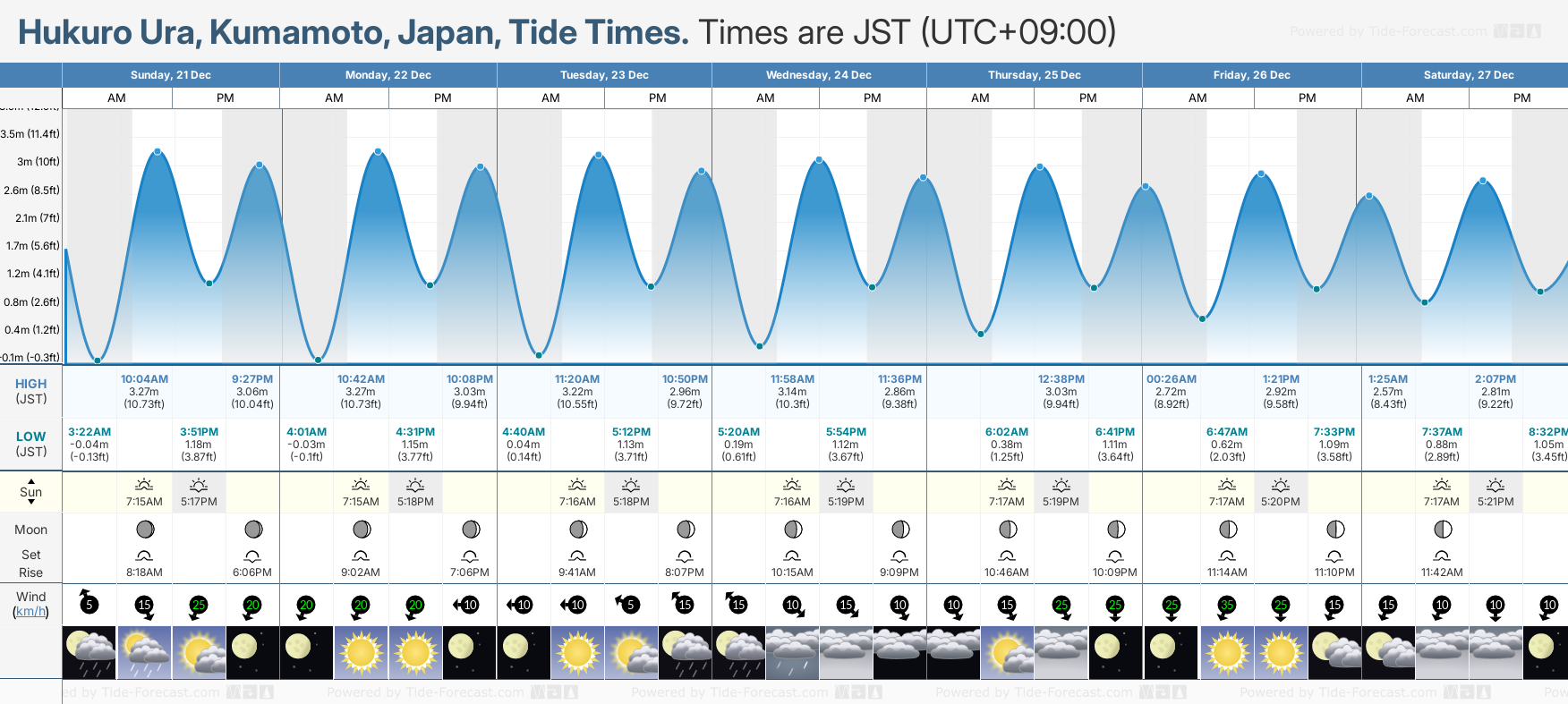 Tide Times for Hukuro Ura: Saturday 27 December 2025