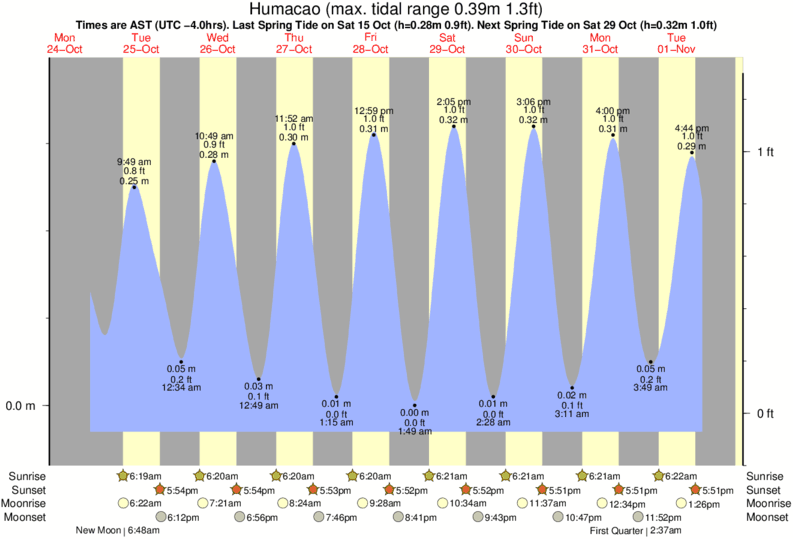 Tide Times are AST (UTC -4.0hrs). Last Spring High Tide at Humacao was on Sat 06 Dec (height: 0.35m 1.1ft). Next high Spring Tide at Humacao will be on Sat 20 Dec (height: 0.30m 1.0ft).