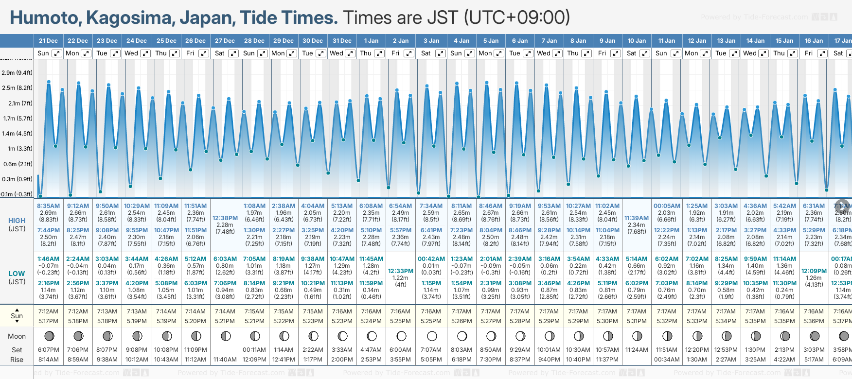 NOTE: Use of this site for Humoto, Kagosima, Japan tide times is subject to our terms.