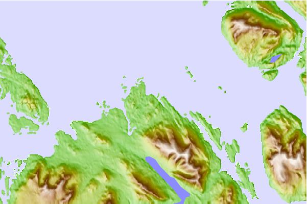 Use this relief map to navigate to tide stations, surf breaks and cities that are in the area of Humpback Bay, British Columbia.