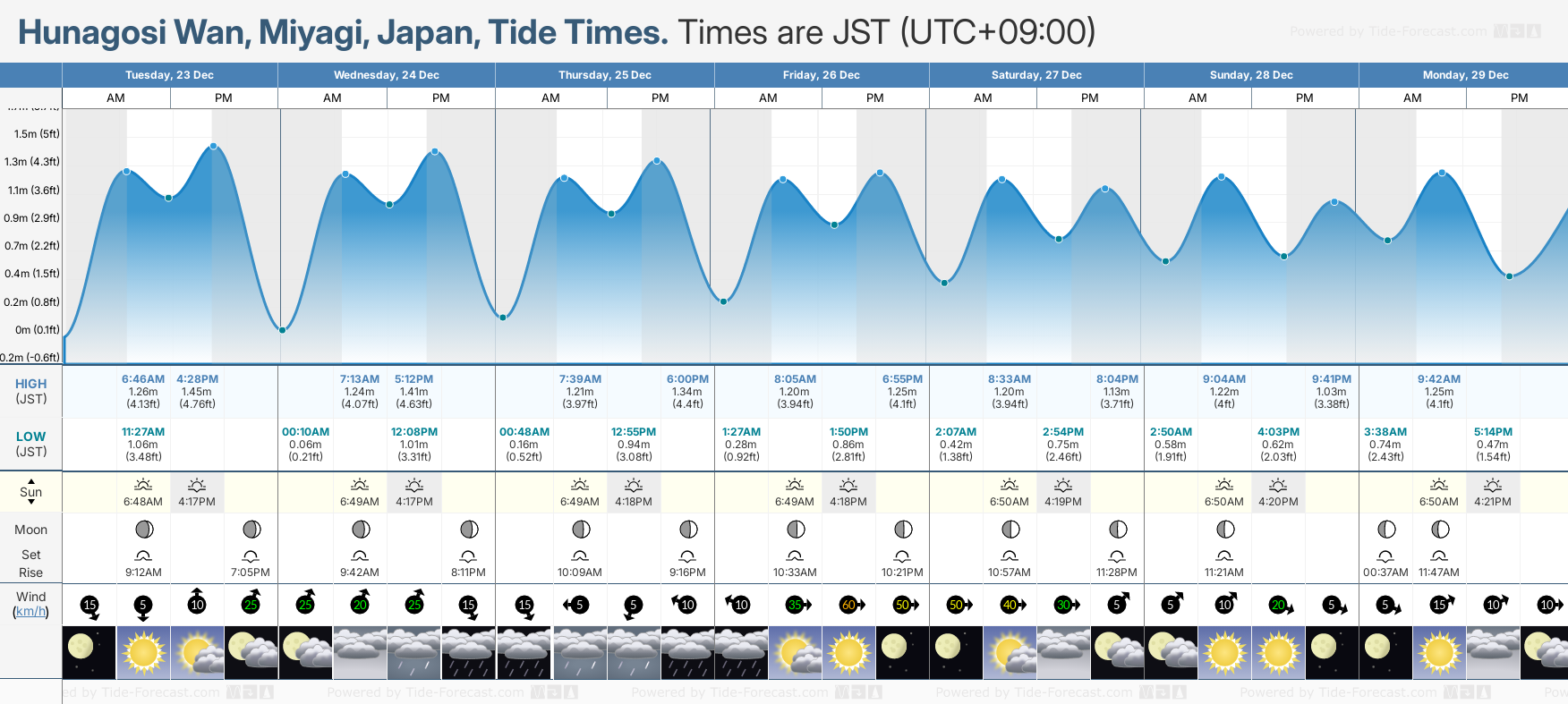 Today's tide times for Hunagosi Wan, Miyagi, Japan