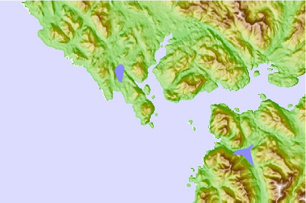Use this relief map to navigate to tide stations, surf breaks and cities that are in the area of Hunt Islets, British Columbia.