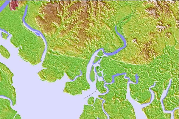 Use this relief map to navigate to tide stations, surf breaks and cities that are in the area of Ikang.
