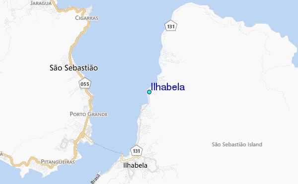 Use this relief map to navigate to tide stations, surf breaks and cities that are in the area of Ilhabela.