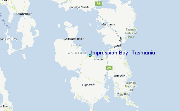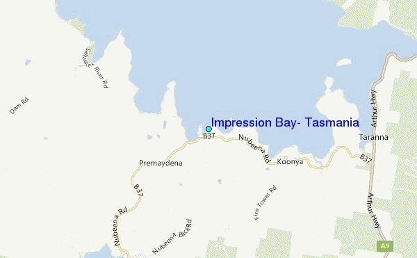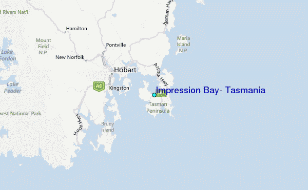 Use this relief map to navigate to tide stations, surf breaks and cities that are in the area of Impression Bay, Tasmania.