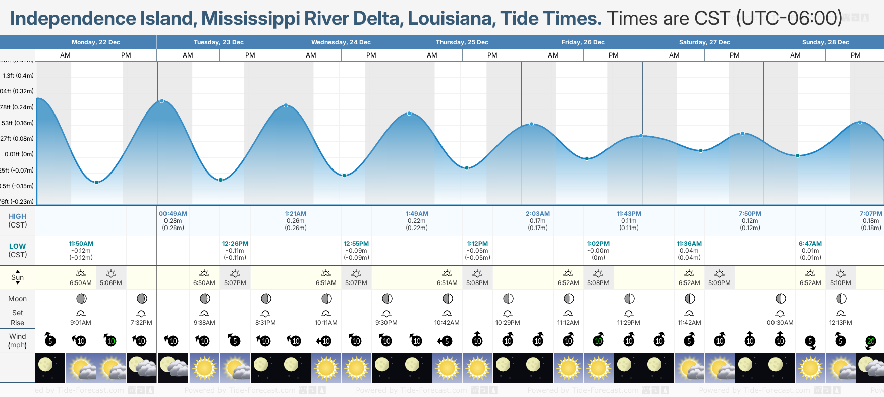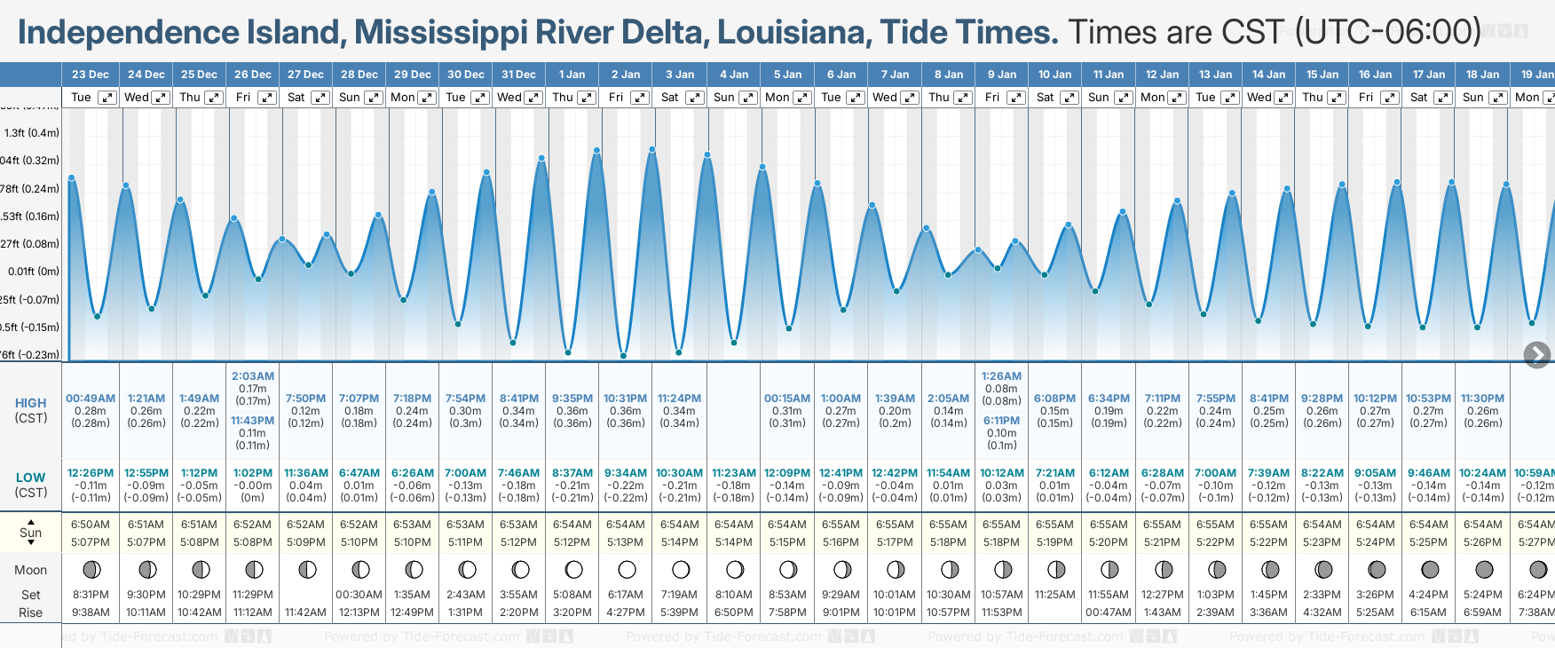 NOTE: Use of this site for Independence Island, Mississippi River Delta, Louisiana tide times is subject to our terms.