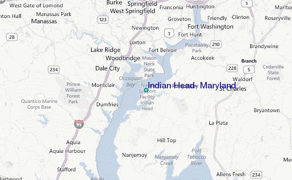 Use this relief map to navigate to tide stations, surf breaks and cities that are in the area of Indian Head, Maryland.