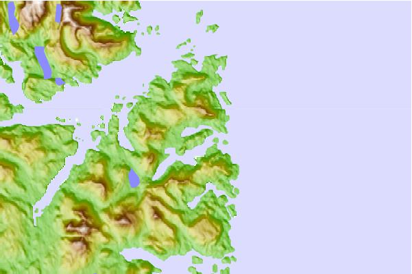 Use this relief map to navigate to tide stations, surf breaks and cities that are in the area of Ingraham Bay, Prince of Wales Island, Alaska.