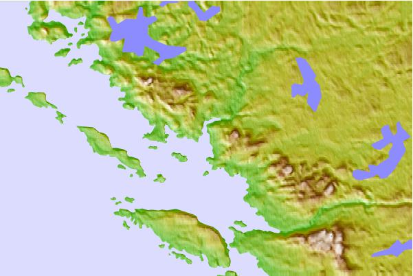 Use this relief map to navigate to tide stations, surf breaks and cities that are in the area of Inoucdjouac, Quebec.
