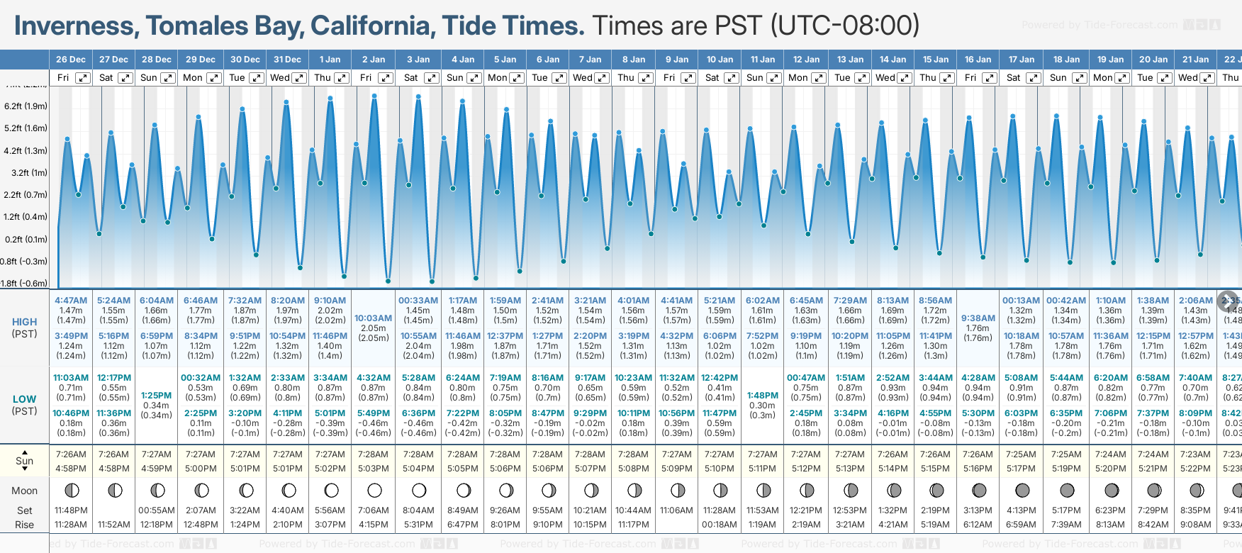 Tide Times for Inverness, Tomales Bay (tomorrow): Friday 26 December 2025