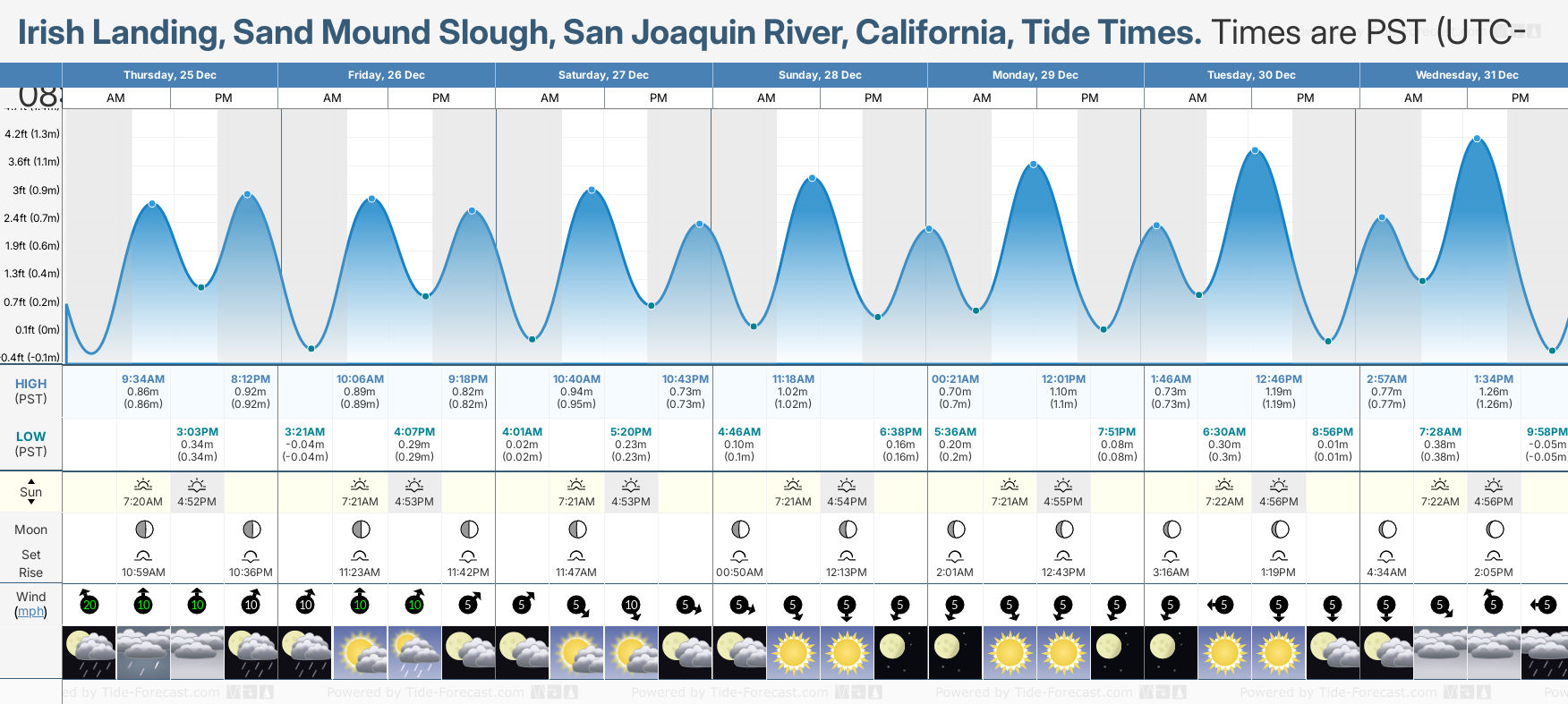 Tide Times for Irish Landing, Sand Mound Slough, San Joaquin River: Wednesday 31 December 2025