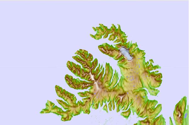 Use this relief map to navigate to tide stations, surf breaks and cities that are in the area of Ísafjörður, Iceland.