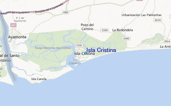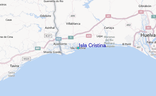 Use this relief map to navigate to tide stations, surf breaks and cities that are in the area of Isla Cristina.