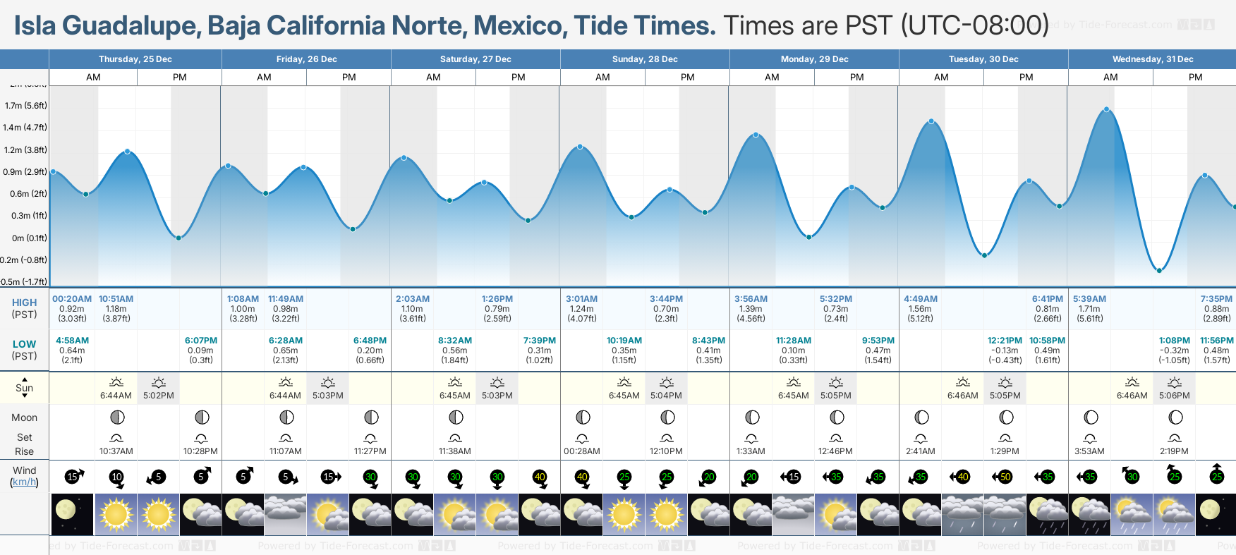 Tide Times for Isla Guadalupe: Wednesday 31 December 2025