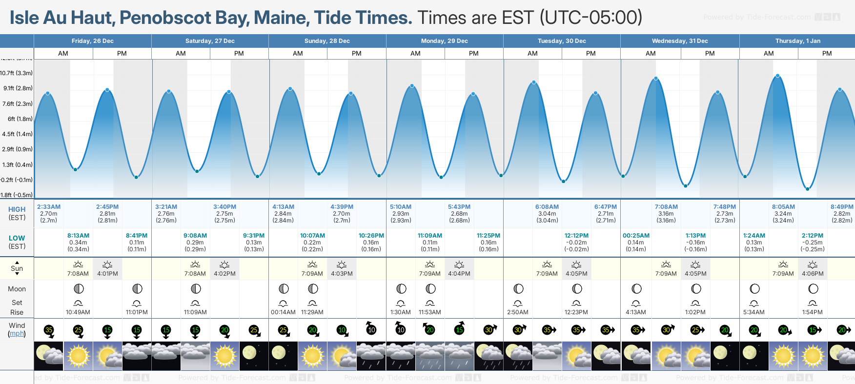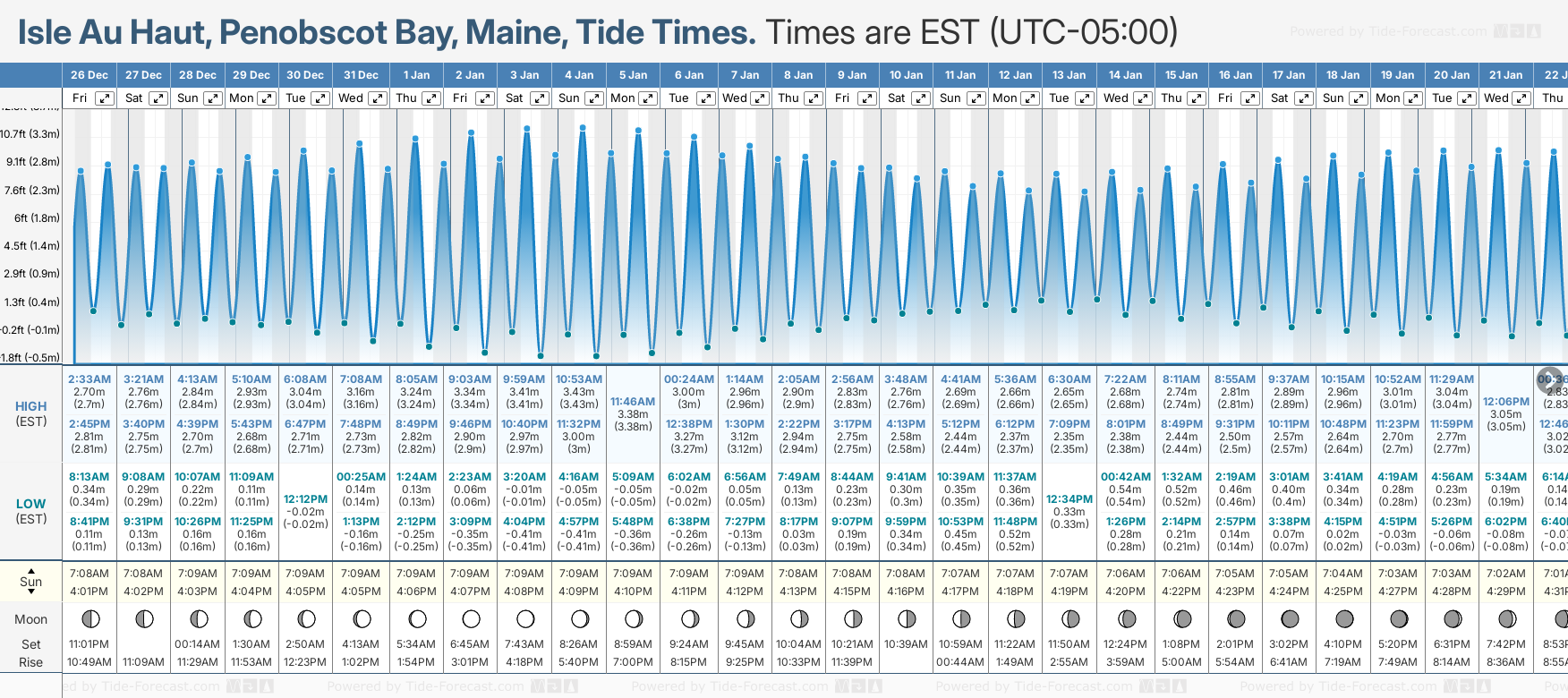 Tide Times for Isle Au Haut, Penobscot Bay (tomorrow): Friday 26 December 2025