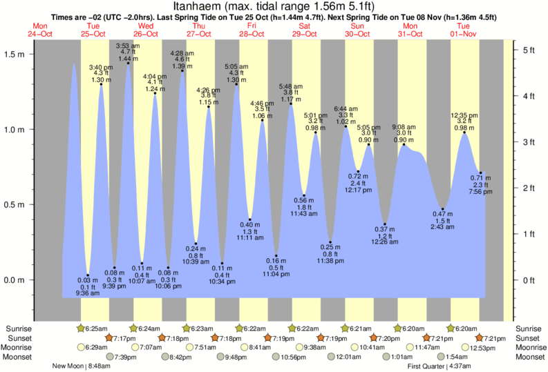 December and January Tide charts for Itanhaem: The tide charts below show the height, time and date of high and low tides for the next 30 days.