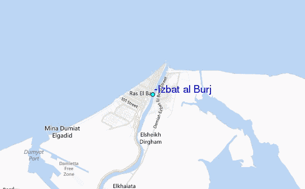 Use this relief map to navigate to tide stations, surf breaks and cities that are in the area of `Izbat al Burj.