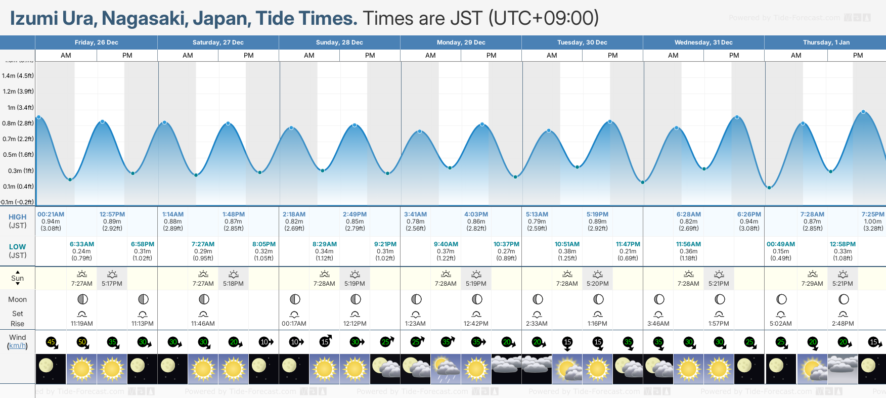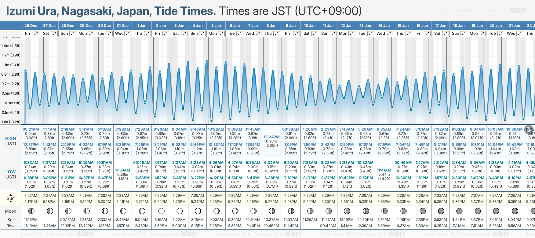 Tide Times for Izumi Ura (tomorrow): Saturday 27 December 2025
