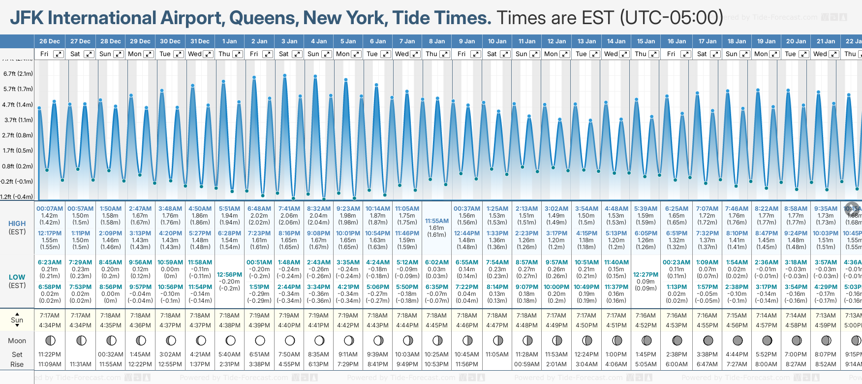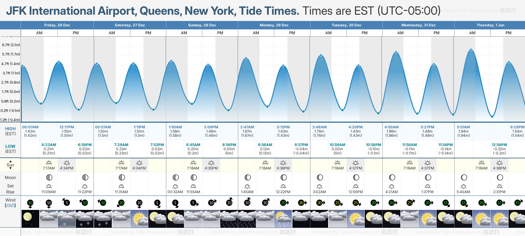 JFK International Airport, Queens tide times for December and January