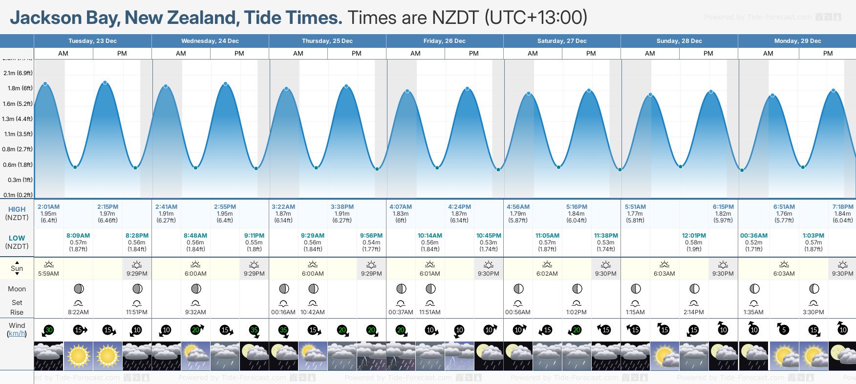 Jackson Bay tide times for December and January