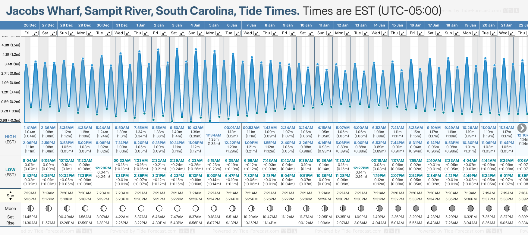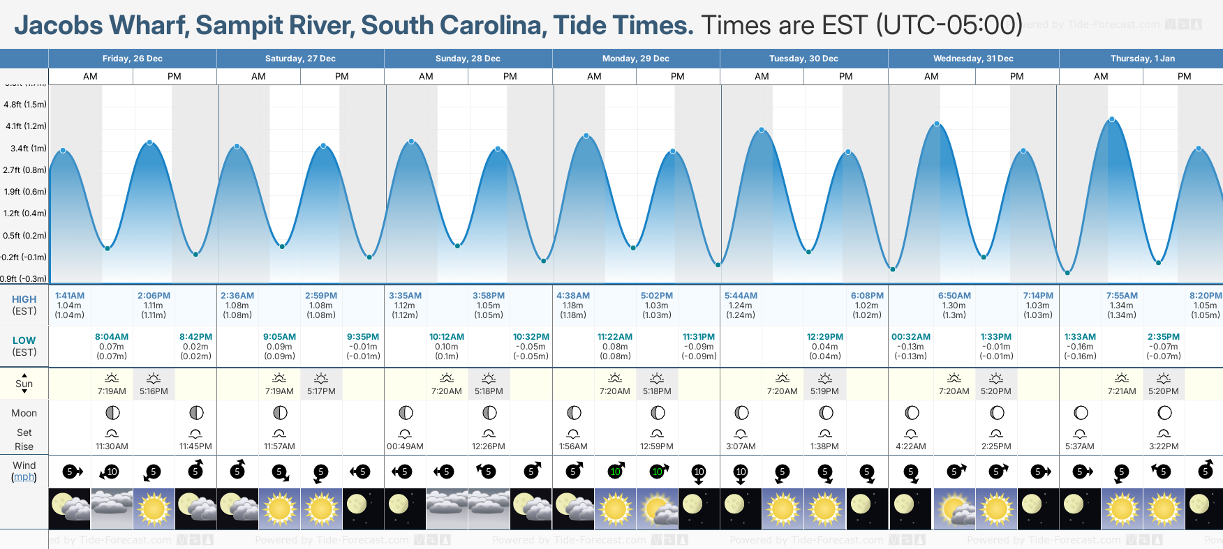 NOTE: Use of this site for Jacobs Wharf, Sampit River, South Carolina tide times is subject to our terms.