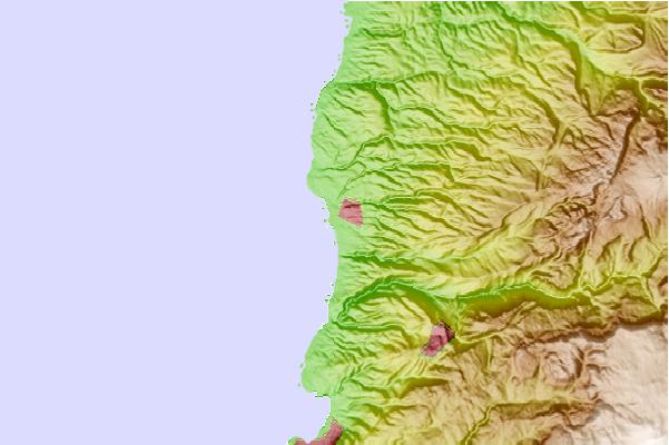 Use this relief map to navigate to tide stations, surf breaks and cities that are in the area of Jbail.