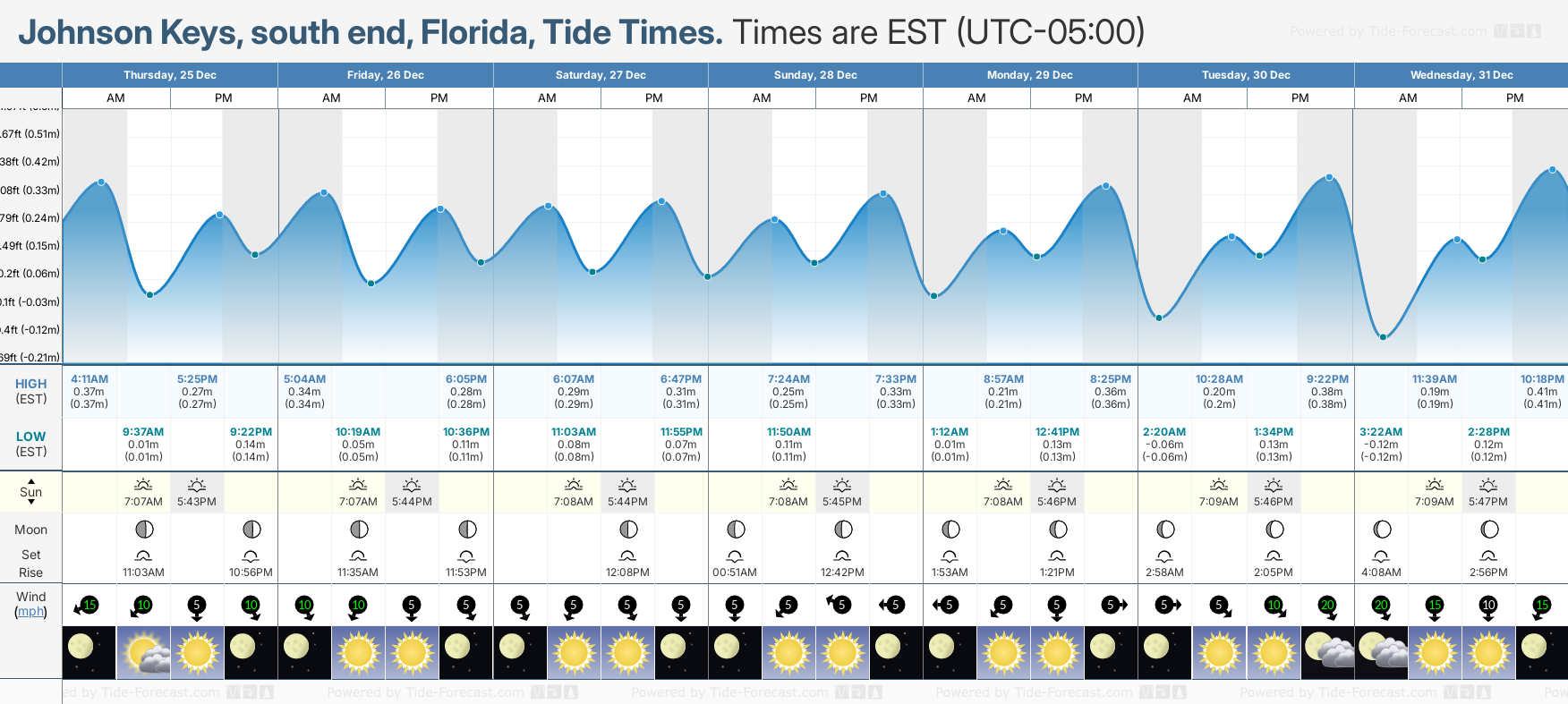 Tide Times for Johnson Keys, south end (tomorrow): Wednesday 24 December 2025