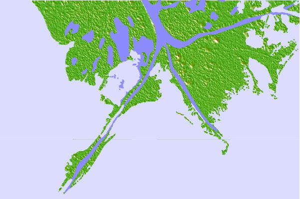 Use this relief map to navigate to tide stations, surf breaks and cities that are in the area of Joseph Bayou, Mississippi River Delta, Louisiana.