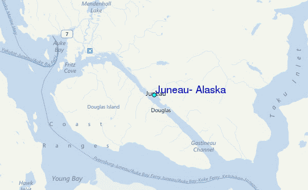Use this relief map to navigate to tide stations, surf breaks and cities that are in the area of Juneau, Alaska.