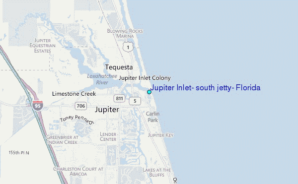 Other Nearby Locations' tide tables and tide charts to Jupiter Inlet, south jetty, Florida: