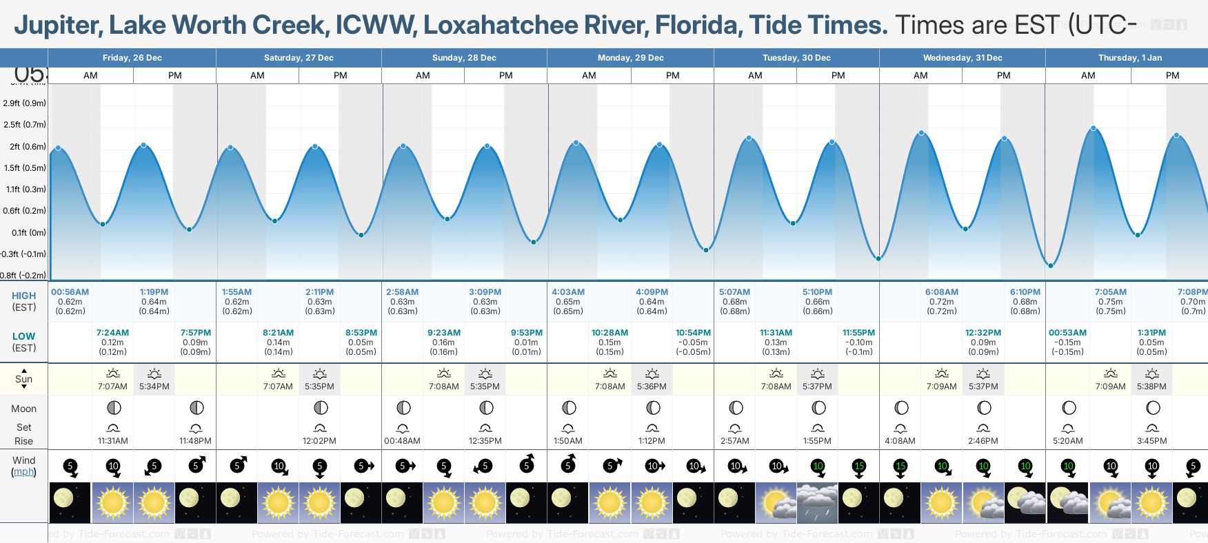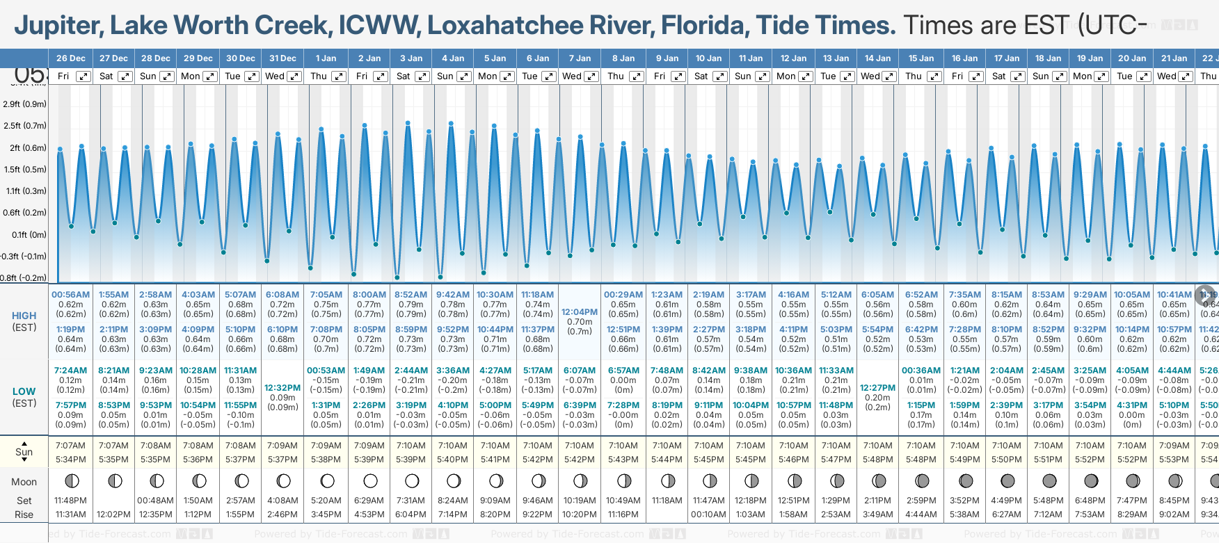 Tide Times for Jupiter, Lake Worth Creek, ICWW, Loxahatchee River (tomorrow): Friday 26 December 2025