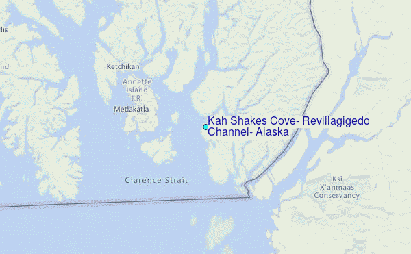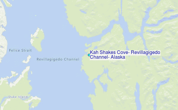 Use this relief map to navigate to tide stations, surf breaks and cities that are in the area of Kah Shakes Cove, Revillagigedo Channel, Alaska.