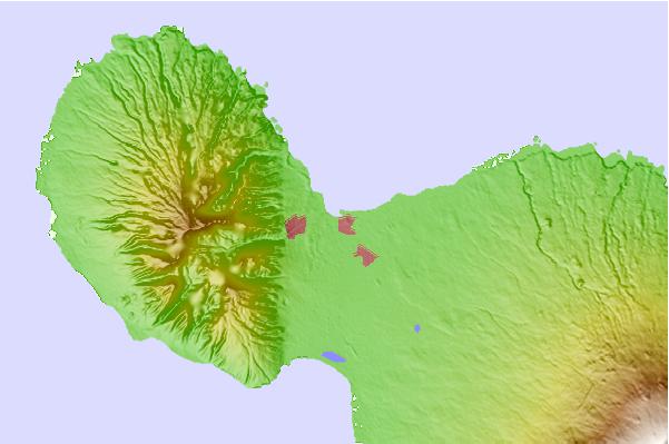 Use this relief map to navigate to tide stations, surf breaks and cities that are in the area of Kahului, Kahului Harbor, Hawaii.