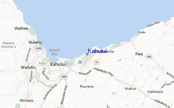Use this relief map to navigate to tide stations, surf breaks and cities that are in the area of Kahului.